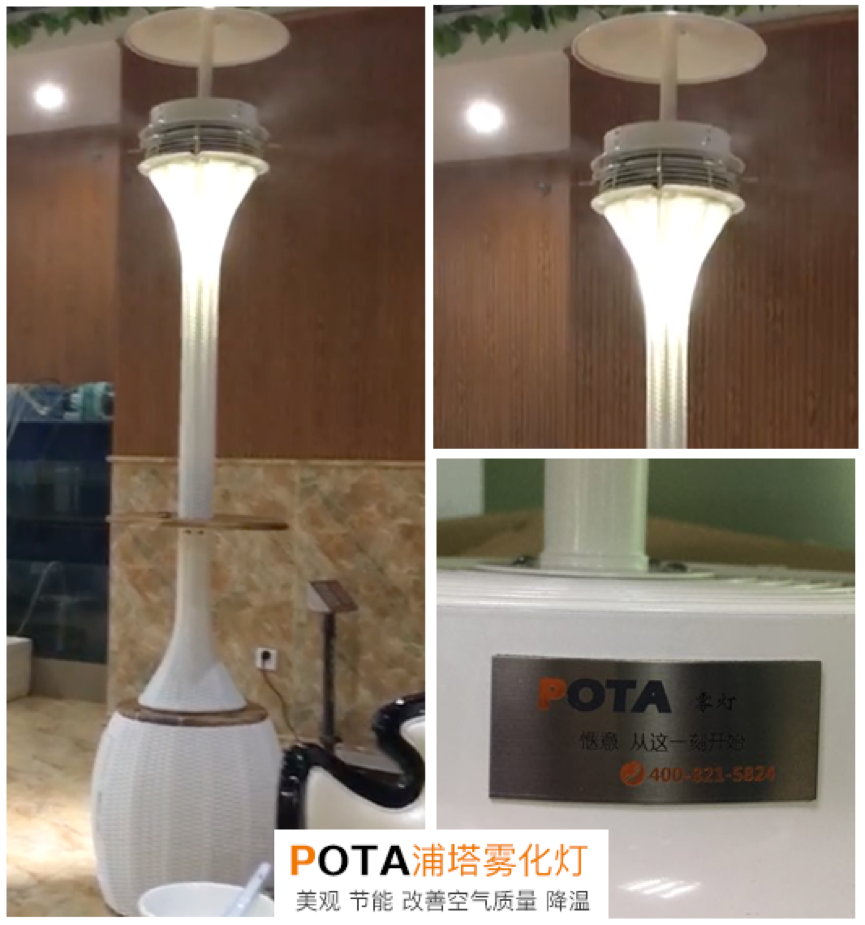 据介绍,其实市民看到的这些能喷雾的神奇物品 ,都是一种降温系统,浦塔降温系统活性干雾机可以起到类似于空调的降温用,水通过雾化降温系统,以极细微雾化状态喷出, 在汽化过程中吸收大量的热量,从而达到快速降温的作用,一般能使覆盖范围内的气温直降3-5℃ 。喷嘴产生直径为微米级的雾滴,在空气中弥散,因雾滴很小,对市民身体不但没有任何影响。还明显的有降温、降尘、清新空气、提高人体舒适度的作用,给人们带来清凉舒适。